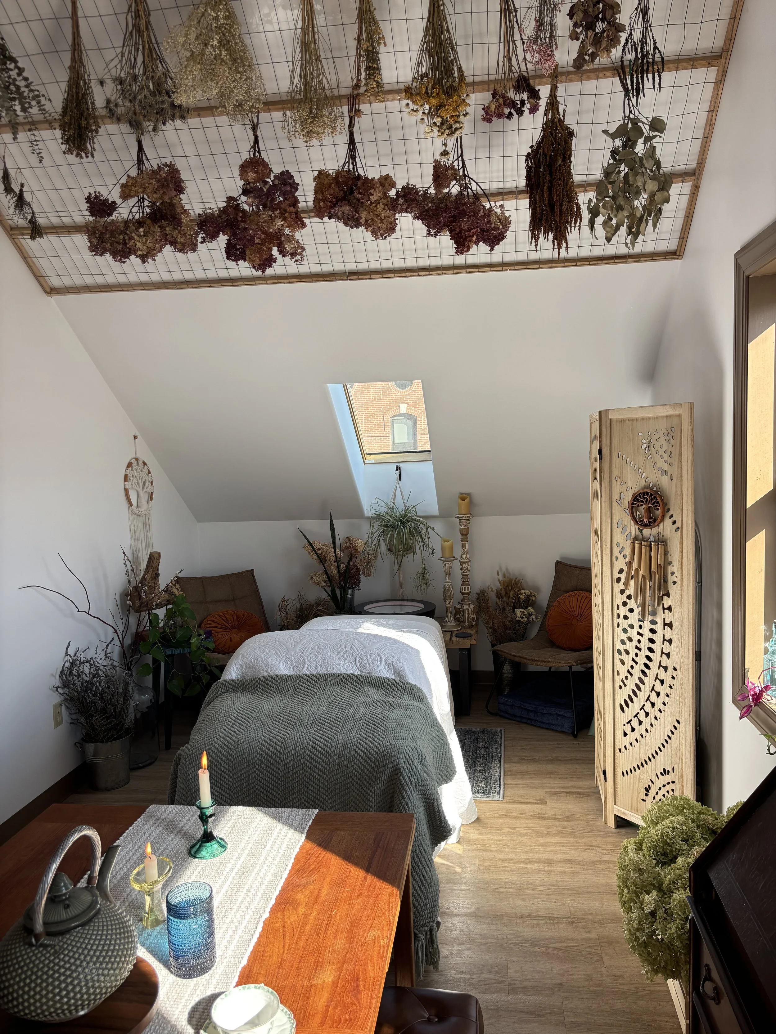 After an initial check in and consultation, my clients lay clothed on a massage table under blankets with pillow support for comfort. Soothing music and essential oils are used to deepen the relaxation. All that’s required is breathing and letting go.